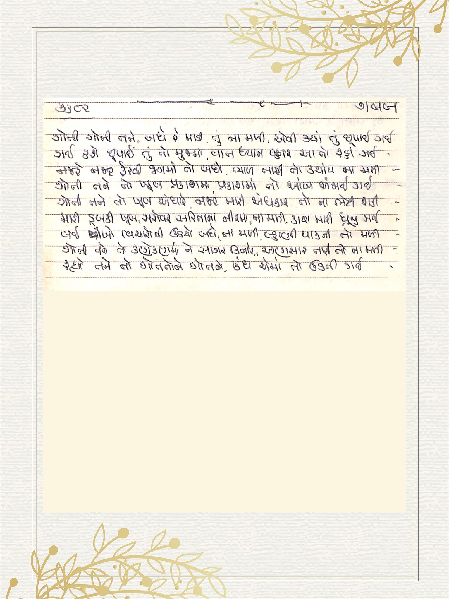 mārī ḍūbakī khūba, sarōvara saritānāṁ nīramāṁ, nā malī, kāyā mārī ghrūjī gaī