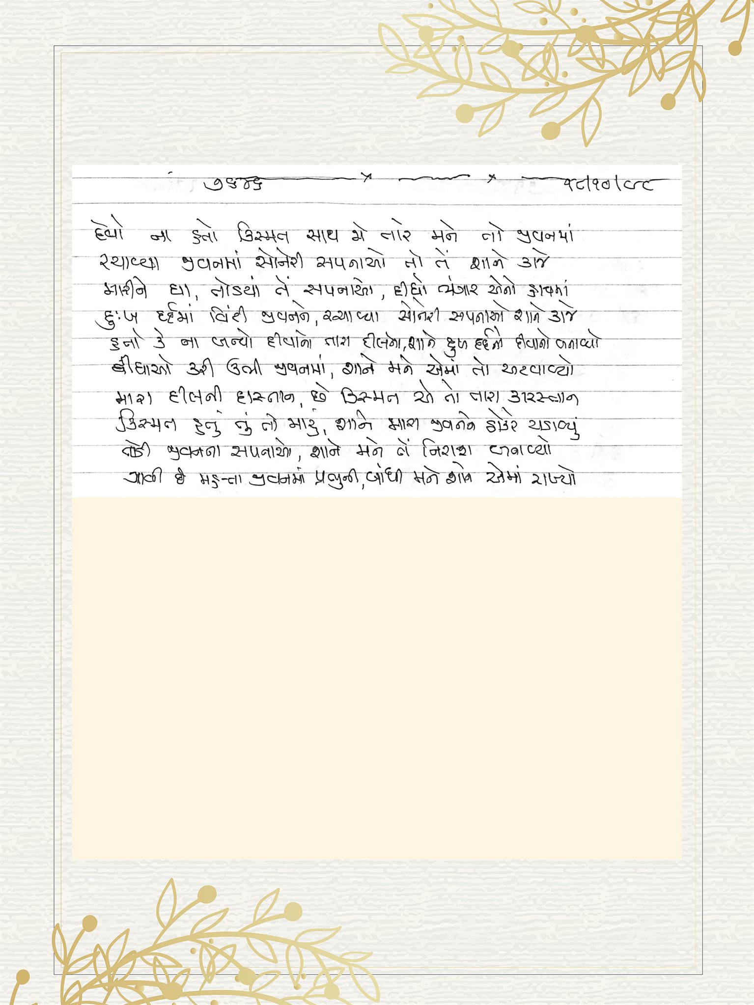 duḥkhadardamā viṁṭī jīvananē, racāvyā sōnērī sapanāō śānē kājē